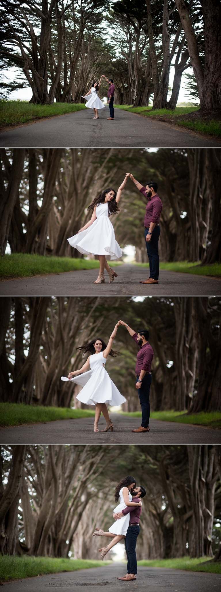 There is nothing more majestic than Northern California’s redwood forest, and Muir Woods National Monument is a great place to take them in. Yash and Anju couldn’t have picked better colors to wear to help them pop off this amazing green backdrop. We spent an hour or so exploring the park, and talking photos, then jumped in the car and headed for the Cypress Tree Tunnel. It was an incredibly fun evening, and Yash and Anju nailed it!